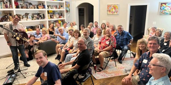 Our "listening yard" concerts used to be held in our backyard in Hermitage, Tennessee on an open air patio with flowers behind the performer(s). Thus the name "Garden Party Concerts." We are now located in Clayton, North Carolina (near Raleigh) and resumed our house concert series in October of 2021 after the Covid-19 pandemic unfortunately canceled our full 2020 season. Our events are now held in our living room, where we limit seating to a maximum of 30-40 attendees. We serve everyone a free dinner about 45 minutes prior to the show, hold the performance for about two hours (including the intermission) and wrap everything up about three hours after our start time. So our events usually run no later than 8 - 8:30 pm.